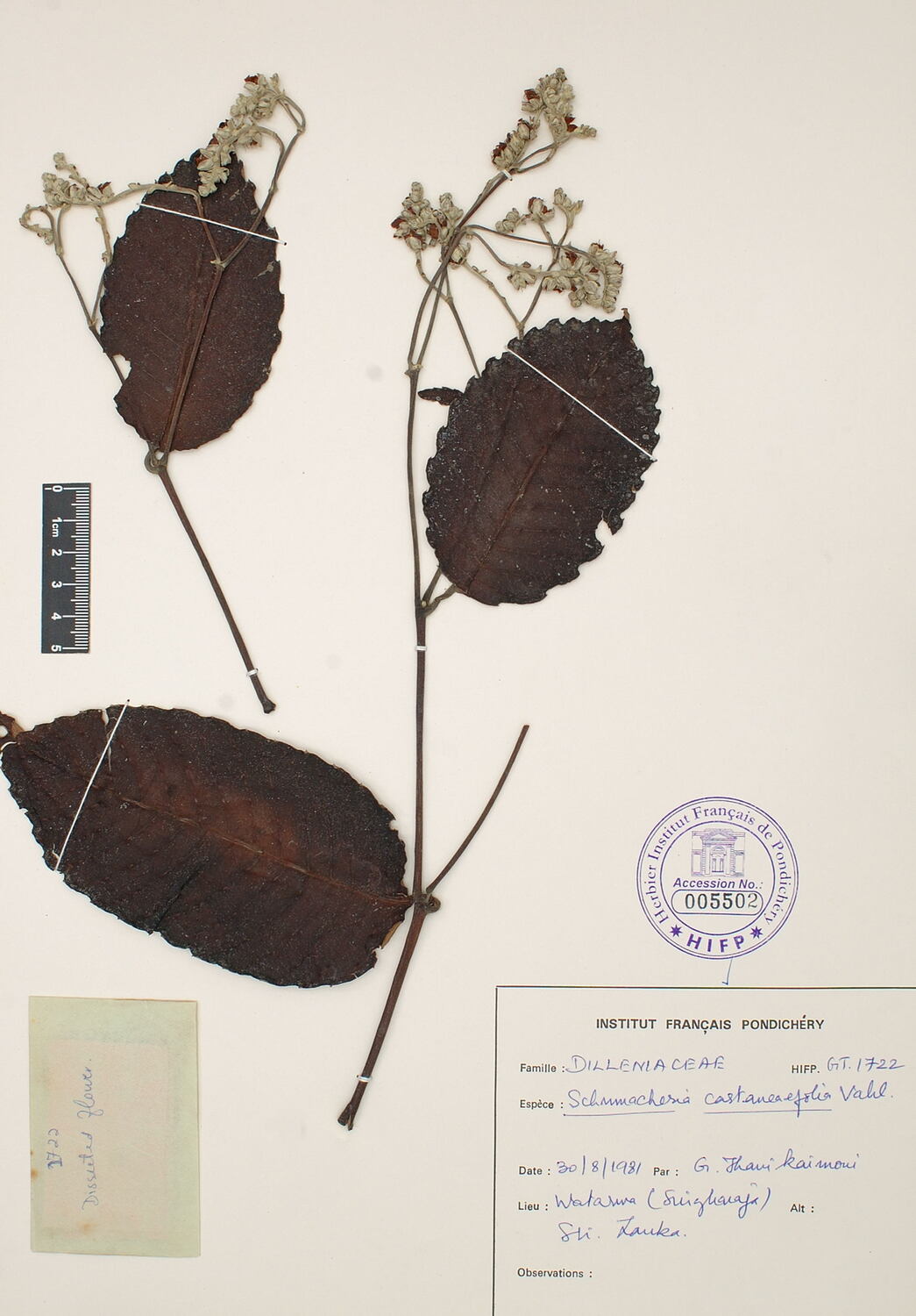 | Taxon name | Schumacheria castaneaefolia Vahl |